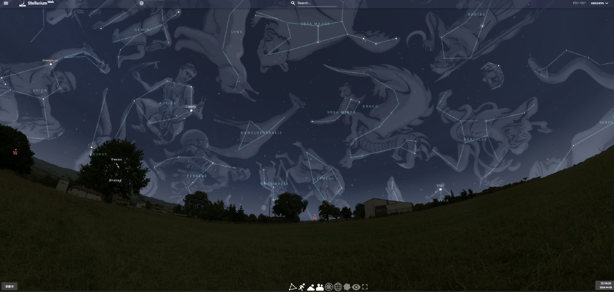 そこで、Stellariumという天体シミュレーションサイトを電子黒板の大画面に映すと、天体が暗記から理解に変わります。今夜の京都の空でも、2000年前のローマの空でも、南極点の真上でも、スライダーひとつで瞬時に再現できます。「星が動く」ことを説明するのではなく、動いている星空をクラス全員でリアルタイムに見る授業へ。